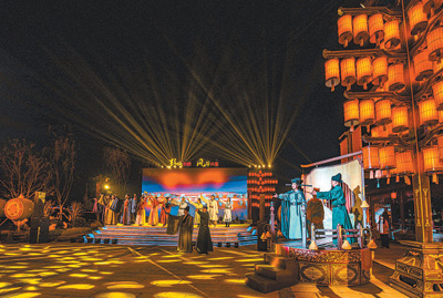金龙湖新天地广场,在市集里信步闲游,耳边传来管弦丝竹之音,沿街手艺人展示着精巧的窗花、糖人,到茶馆斟两盏茶,啖几口酥点,看上一段古韵歌舞,倘若还有时间,可再玩几局礼乐投壶,好不惬意!
