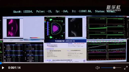 第122254次实验!4月12日21时,中国有“人造太阳”之称的全超导托卡马克核聚变实验装置(EAST)创造新的世界纪录,成功实现稳态高约束模式等离子体运行403秒,对探索未来的聚变堆前沿物理问题,提升核聚变能源经济性、可行性,加快实现聚变发电具有重要意义。