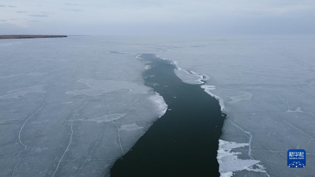 近期,随着天气转暖,位于内蒙古呼伦贝尔大草原腹地的呼伦湖上的冰面开始消融,形成了独特的开湖景观。