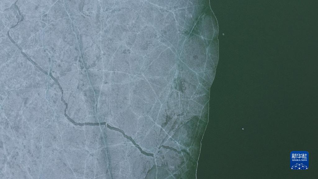 这是4月17日拍摄的呼伦湖开湖景象(无人机照片)。新华社记者 王楷焱 摄