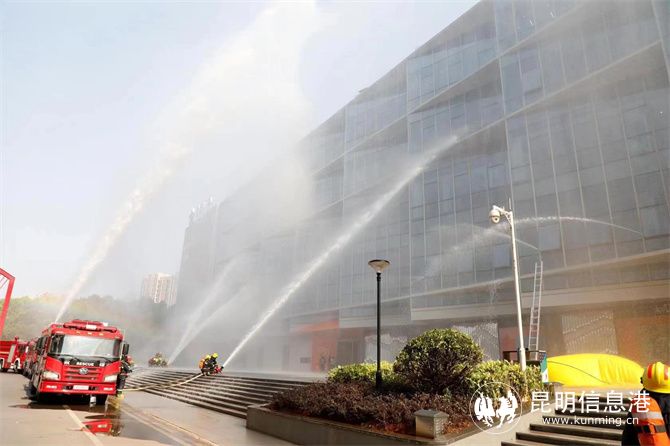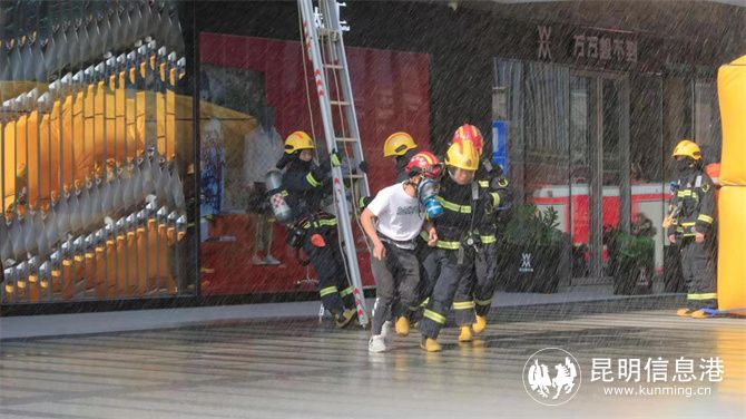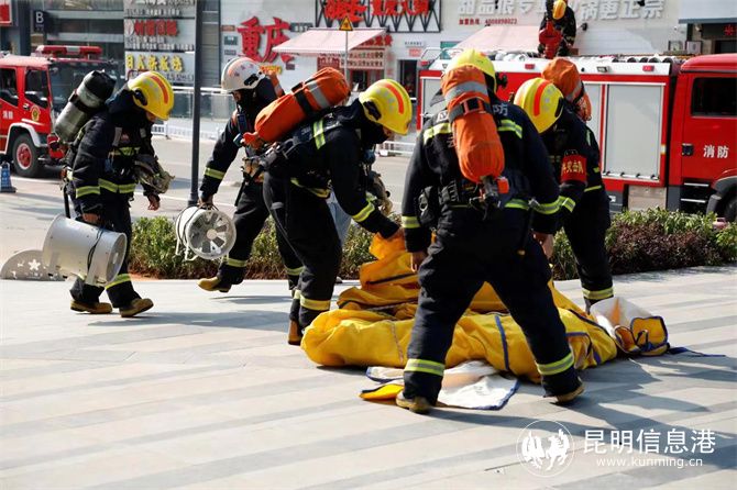 昆明信息港讯 4月21日,官渡区政府组织开展大型商业综合体灭火救援实战演练,全面提升队伍快速反应和灭火救援作战能力,切实做好大型商业综合体灭火救援准备工作。