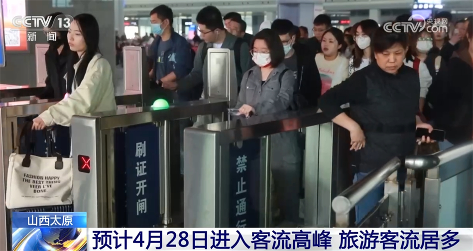 在山西太原,从4月28日到5月4日,太原南站预计发送旅客98万人次,同比增长85万人次。节前客流预计从4月28日进入高峰,5月3日、4日将是返程高峰,其中,旅游客流占了大半。
