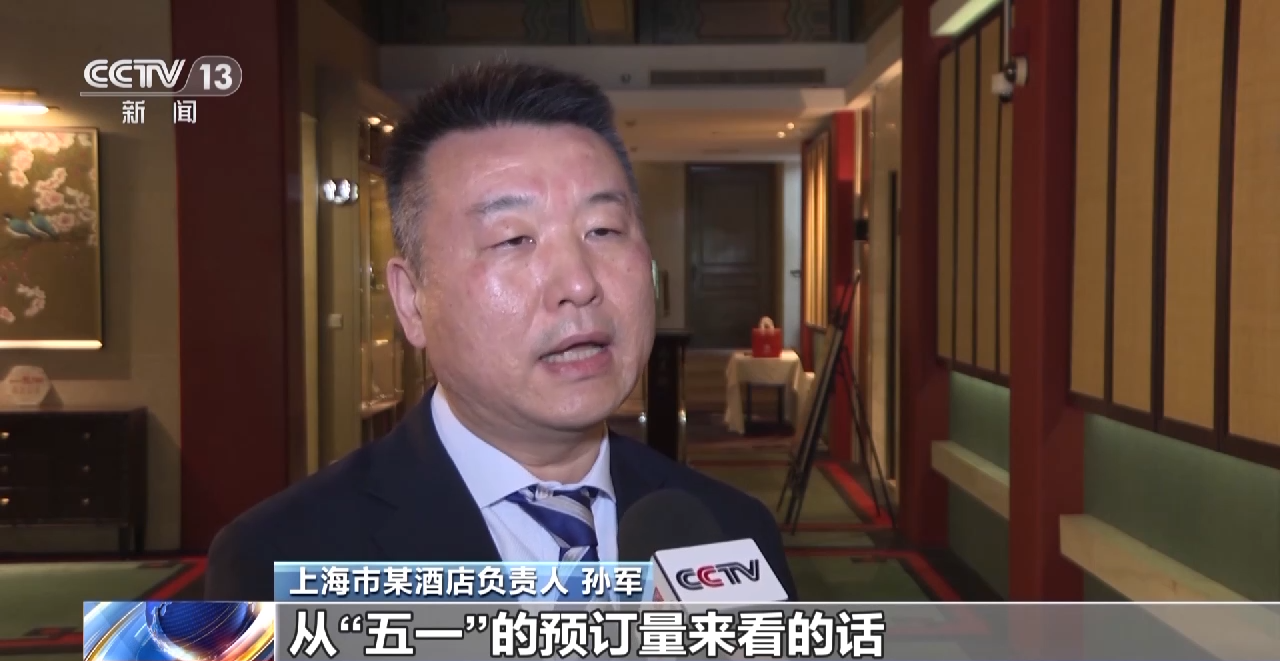 上海市某酒店负责人 孙军:从“五一”的预订量看我们有95%左右的入住预订率,随着“五一”节临近,商务客比例在往下走,家庭出行、旅游观光的客人比例在上涨。还有个客群变化亮点是文艺活动增多,一有文艺节演出,这些文艺团队和观看观众在这边的入住率相对比例也在慢慢上升。