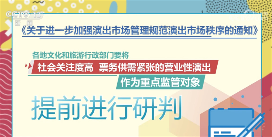 通知指出,各地文化和旅游行政部门要依法做好演出活动的审批工作,将属于营业性演出范围的农村集镇演出、流动性演出纳入审批管理,严格审核演出举办单位的资质文件,统一审批要求,做好内容监管。对不符合法定审批要求的,坚决不予批准。文化和旅游行政部门要定期对演出场所进行检查,督促演出场所定期开展设施设备检查,落实安全生产责任制。督促演出场所建立完善现场巡查制度,指定专人负责演出活动的巡查,做好现场观众管理,坚决防止拥挤、踩踏等事故发生,确保演出现场安全。各地文化和旅游行政部门要将社会关注度高、票务供需紧张的营业性演出作为重点监管对象,提前进行研判。督促演出举办单位、演出票务经营单位面向市场公开销售的营业性演出门票数量,不得低于核准观众数量的70%。对在票务经营中发现有炒票问题或可能造成不良影响的,应当及时约谈演出举办单位和演出票务经营单位,督促整改。要联合属地公安、市场监管等部门,依法打击“黄牛”炒票、虚假宣传等违法违规行为,切实保障消费者合法权益。