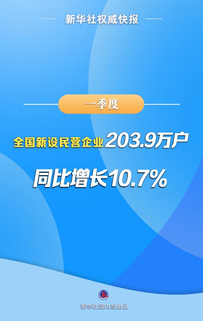 新华社权威快报丨一季度全国新设民营企业203.9万户 同比增长10.7%