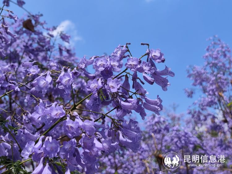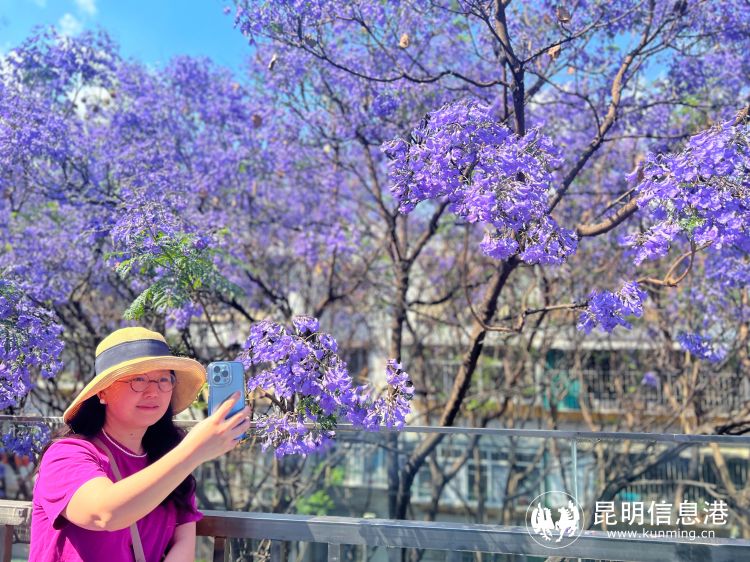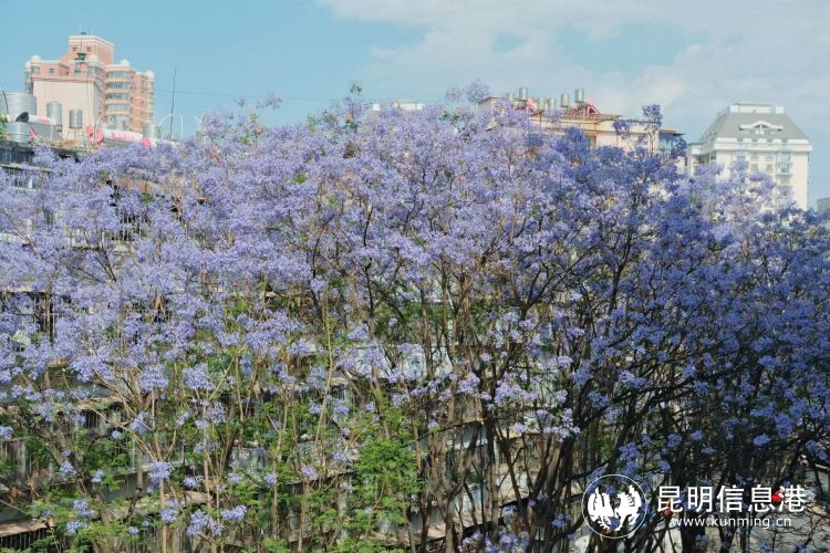 昆明信息港讯 记者李莹 “东君若待归春邑,一夜蓝花开满城”。 每年春末夏初,自带“梦幻蓝紫”滤镜的蓝花楹就是昆明城中的绝对主角。眼下,昆明西山区铁皮巷沿路的蓝花楹已是盛放如蓝紫焰火。4月27日,西山区金碧街道“春艺ON燃·蓝花楹开·幸福金碧”文化节活动启动,彩云里A栋3楼蓝花楹露台同期免费开放,市民与游客可在此零距离观赏蓝花楹盛放景致。