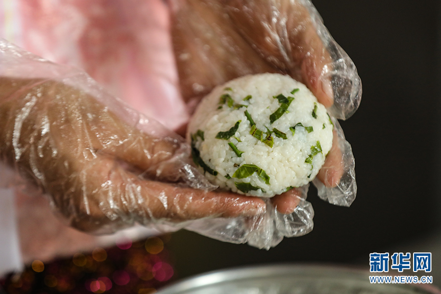 捏好的春茶饭团,接下来烤至表面焦黄即可食用(4月9日摄)。新华网发(景谷县融媒体中心 供图)