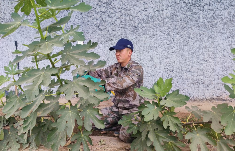 回乡创业的年轻人柏波种植无花果树。新华社记者 邹欣媛 摄