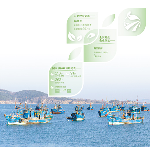 如今,我国国家级种业基地加快布局,由216个农作物基地、262个畜禽育种场、91家水产原良种场组成的“国家队”,供种保障能力由70%提高到75%。节水小麦、优质水稻品种选育取得新突破,农作物良种覆盖率达96%以上,保障了中国粮主要用中国种。