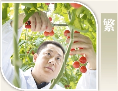 江苏省昆山市陆家镇未来农业示范园中,技术人员在采摘新选育出的西红柿品种。 许丛军摄(人民视觉)