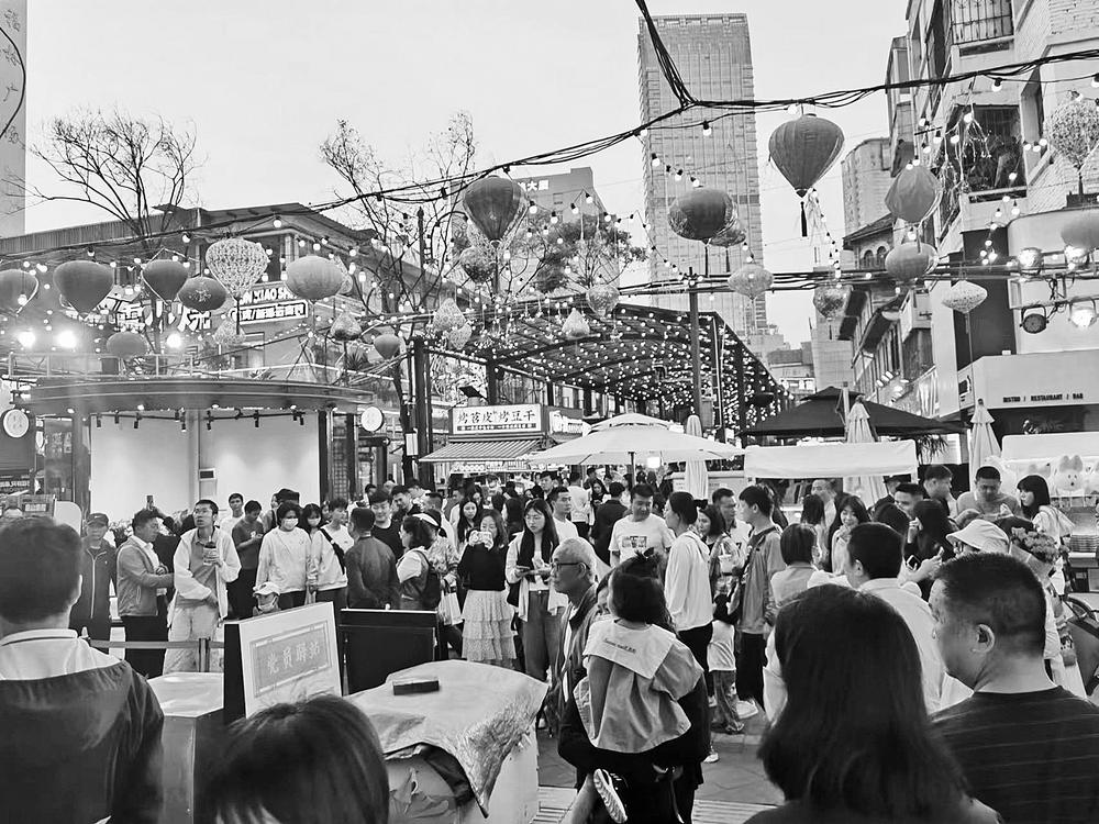 古老的商业业态——市集,在体验经济、场景消费不断升温的今天,焕发出新的活力。4月28日19时许,南强街巷人潮涌动、热闹非凡。新开张的“野生菌披萨”店迎来了一波又一波顾客;街市上一个个身着各式汉服的女孩鱼贯前行,上演精美汉服走秀,古色古香,吸引人们驻足观赏、拍照留念;文创市集上,鲜花、手工银饰、书法小扇、玩偶等特色商品琳琅满目。