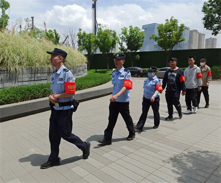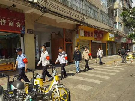 发动辖区“红袖标”志愿者参与巡逻防控工作。