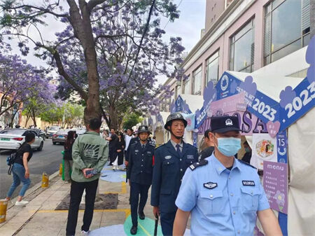 到辖区蓝花楹打卡景点开展安全值守、巡逻防控工作。