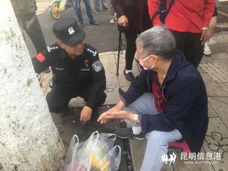 5月1日上午,莲华派出所民警正在教场中路巡逻,发现一名在蓝花楹大道路边晕倒的老人,民警立即上前救助将老人扶坐起来,老人慢慢缓和后说了自己有糖尿病,买菜路过蓝花楹顺便来赏花,不料路上因低血糖晕倒,民警立即送上糕点,待老人缓和后将老人平安送回家。