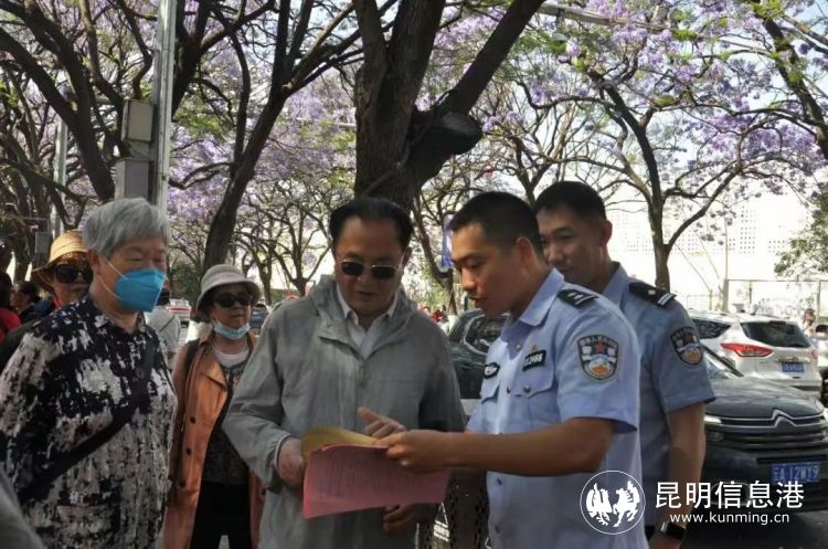 教场中路一带的蓝花楹进入盛花期,伴随着蓝花楹艺术节的开幕,使得这一区域的人流量大幅上升,每日游客约7万人。莲华派出所及时增派警力加强巡逻防控,全力确保蓝花楹树上的风景靓丽,树下游客平安。