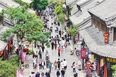 5月3日,游客在山东青州古城景区游玩。王继林摄(人民视觉)