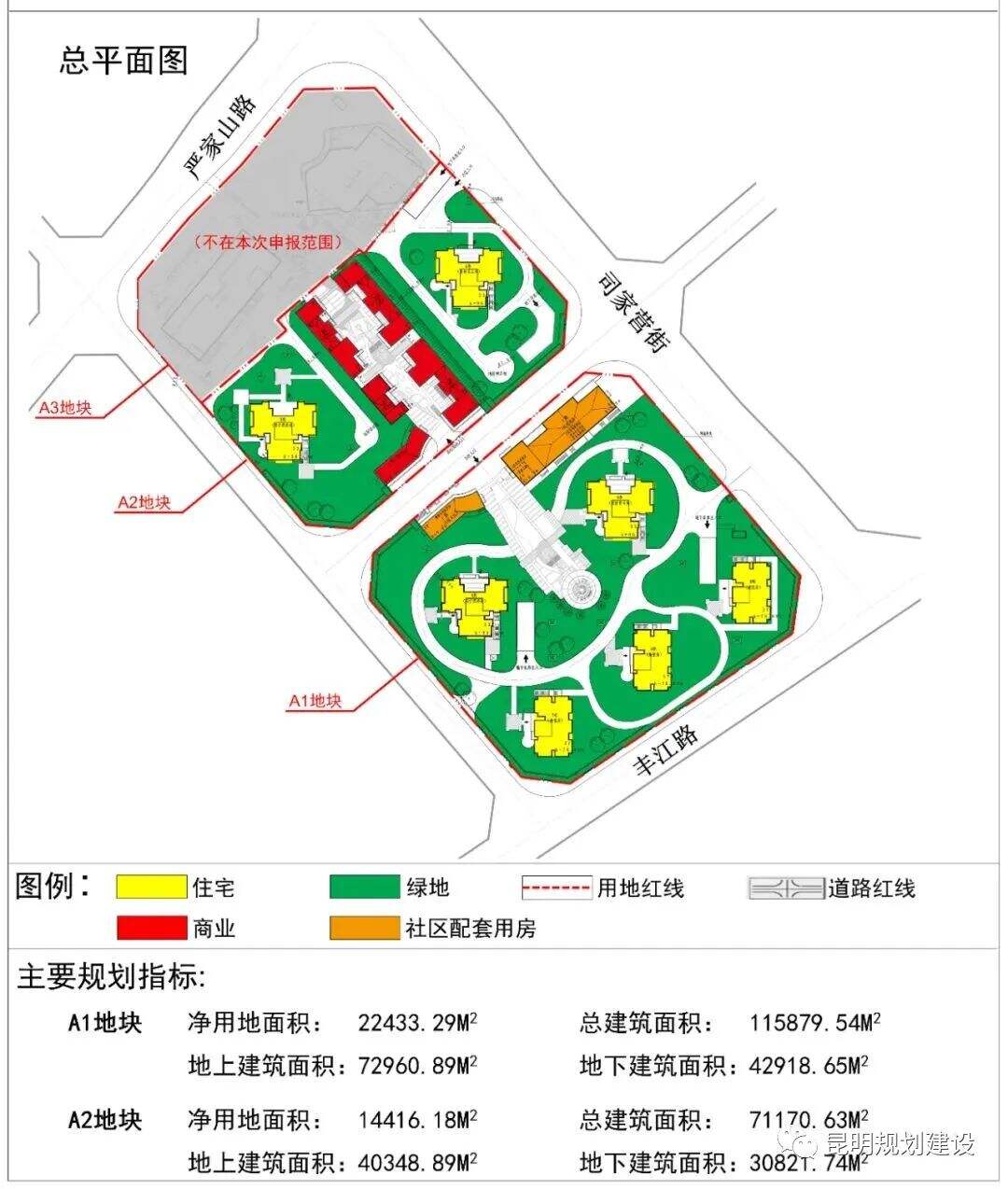 该项目共由两个居住地块(A1、A2)和一个商地块(A3)组成。该项目为《建设工程规划许可证(建字第530101201400031号)注销后新办理两个居住地块 《A1、A2建设工程规划许可证》。