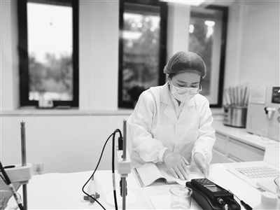 工作人员在进行图书的酸碱度检测。记者 张盖伦摄