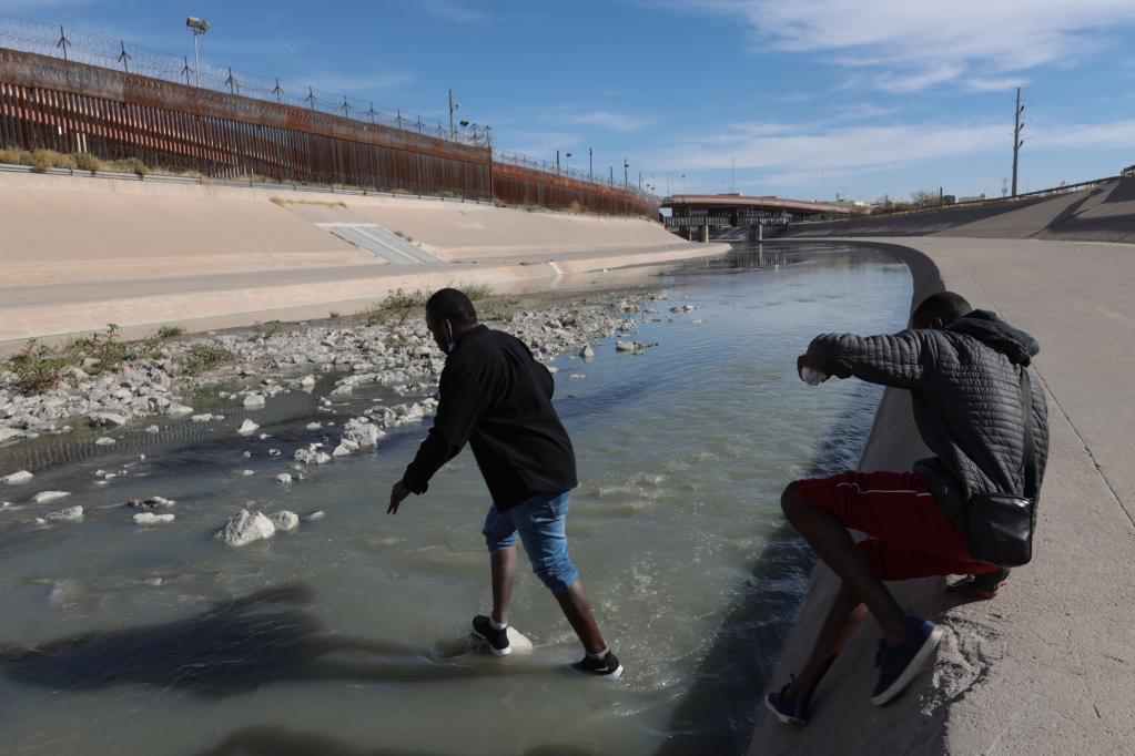 2021年12月7日在墨西哥华雷斯城拍摄的照片显示,移民试图通过美墨边境的布拉沃河进入美国。新华社发(戴维·佩纳多摄)