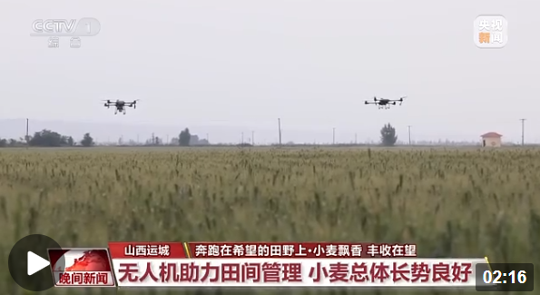 山西运城河津市农业农村局副局长 赵伟斌:为了保障今年粮食安全,我们组织了35架植保无人机和70余名工作人员,对全市24万亩小麦进行全覆盖施工喷防作业。