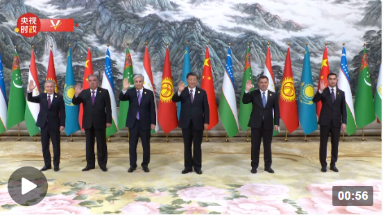 5月19日上午,国家主席习近平在西安国际会议中心,为中亚五国领导人举行迎宾仪式并集体合影。