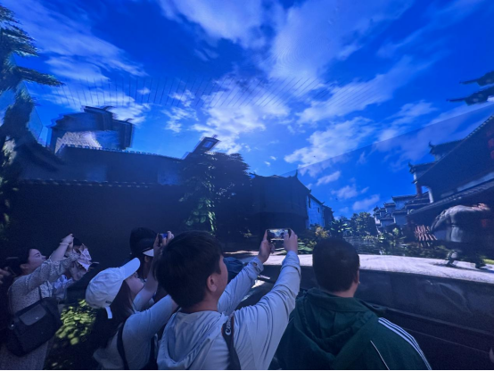 记者跟随游客的脚步进入古民居展厅,感受全息影像的魅力。光与影的梦幻交织,让游客可以全方位地观看展示内容,沉浸式体验“下屋”中的百味人生。