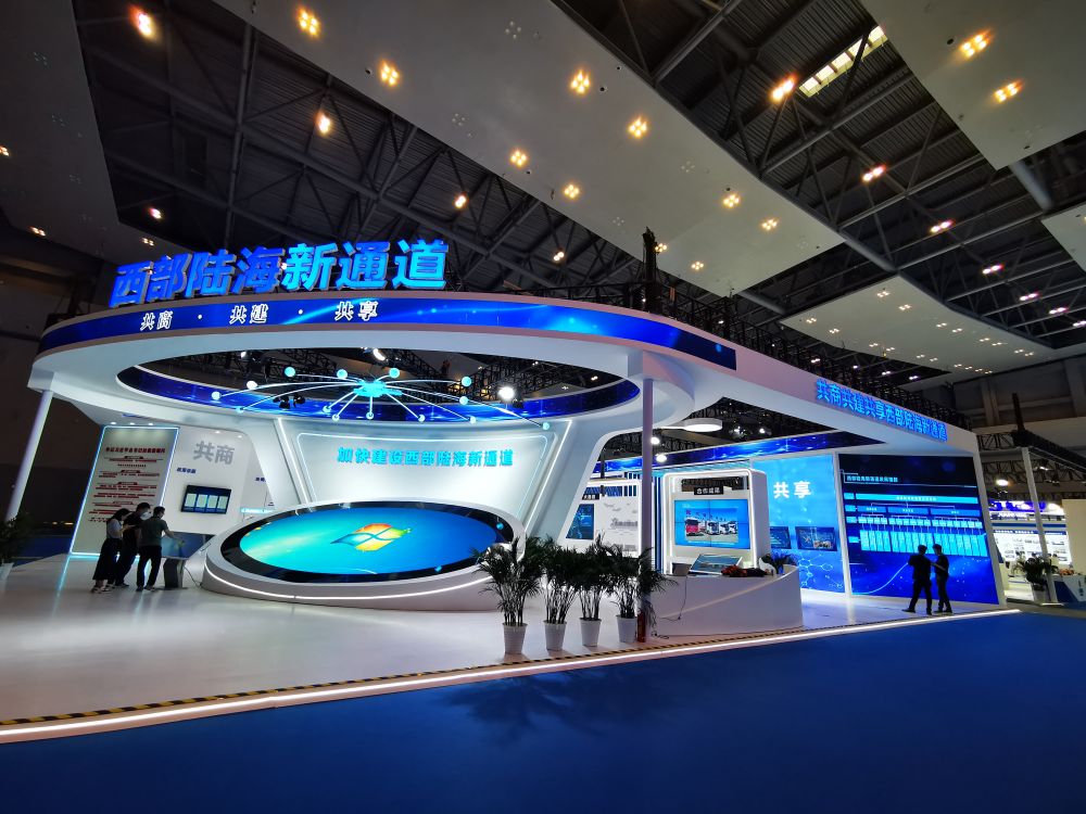 这是5月19日拍摄的第五届中国西部国际投资贸易洽谈会西部陆海新通道展厅。新华社记者 赵宇飞 摄
