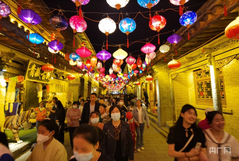 央广网西宁5月20日消息 5月19日晚,在青海省西宁市湟源县的丹噶尔古城内灯光璀璨,人流如潮,众多当地群众和游客聚集到这里,一睹湟源排灯的风采,共游览丹噶尔古城品河湟美味。当晚,“唐蕃古道·日月湟源”2023年湟源县排灯文化旅游节系列活动在这里拉开帷幕。