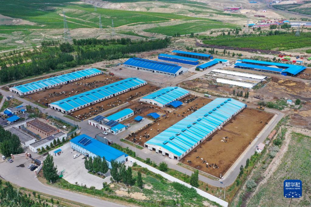 这是5月19日拍摄的新疆伊宁市巴彦岱镇奶牛养殖场(无人机照片)。