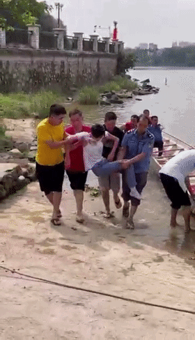 “快救人!”胡金有向队友们大喊,大家迅速反应,一同跳上停靠在岸边的一条龙舟,拿出比赛的劲头,快速划向约摸60多米远的落水者。赶到近处时,又很专业地放缓速度,慢慢靠近,以免对落水者造成二次伤害。