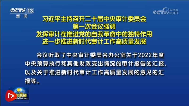 中共中央总书记、国家主席、中央军委主席、中央审计委员会主任习近平5月23日下午主持召开二十届中央审计委员会第一次会议。习近平在会上发表重要讲话强调,在强国建设、民族复兴新征程上,审计担负重要使命,要立足经济监督定位,聚焦主责主业,更好发挥审计在推进党的自我革命中的独特作用。做好新一届中央审计委员会工作,要坚持以新时代中国特色社会主义思想为指导,深入学习贯彻党的二十大精神,完整、准确、全面贯彻新发展理念,聚焦全局性、长远性、战略性问题,加强审计领域战略谋划与顶层设计,进一步推进新时代审计工作高质量发展,以有力有效的审计监督服务保障党和国家工作大局。