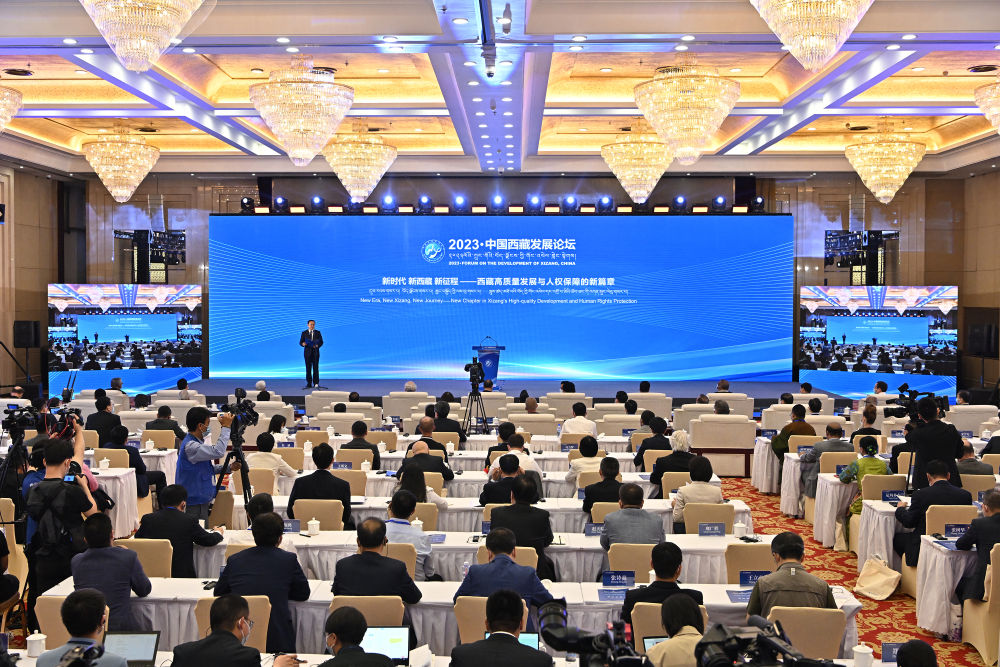 5月23日,“2023·中国西藏发展论坛”在北京举办。来自36个国家和地区的150多名中外嘉宾,围绕“新时代、新西藏、新征程-西藏高质量发展与人权保障的新篇章”主题,广泛交流,深入探讨,共同分享以发展促人权的新经验,充分肯定西藏在经济发展、文化传承、生态保护、人权保障等方面取得的新进步。“2023·中国西藏发展论坛”由国务院新闻办公室和西藏自治区人民政府共同主办。