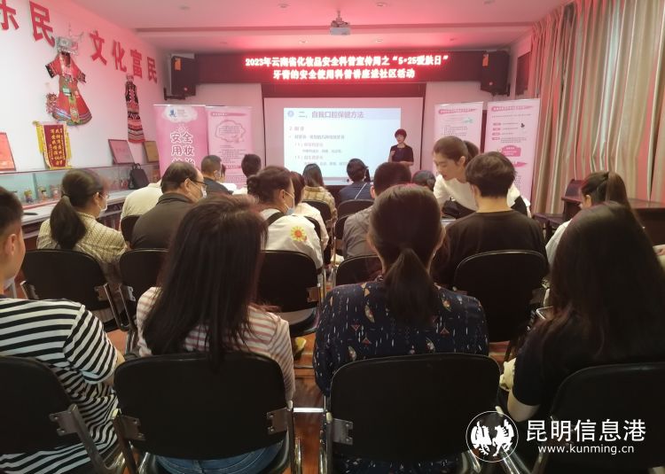 在“5.25爱肤日”当天,由云南省药品监督管理局主办,云南省药品评价中心承办的化妆品安全科普宣传进社区活动在昆明市五华区黑林铺街道锦兴苑社区开展,这是2023年云南省化妆品安全科普宣传周系列活动的一部分。活动组织了昆明医科大学附属口腔医院、昆明医科大学第一附属医院、云南白药、贝泰妮、一心堂等单位和企业,走进社区进行化妆品安全科普宣传。