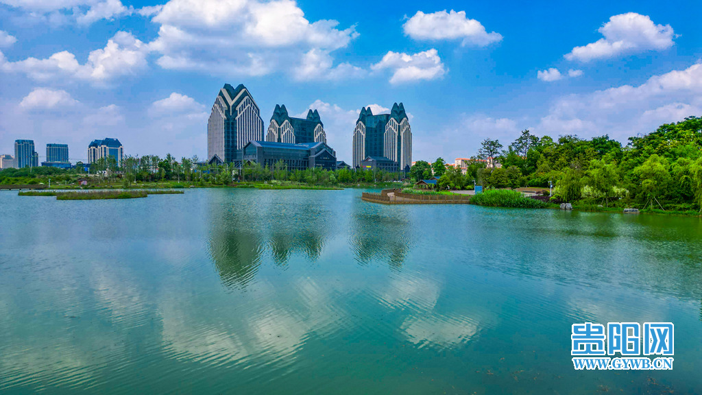 城市中央会客厅——月亮湖公园、星月湖公园开园迎客;算力中心、贵安中心迎来一批批企业入驻办公;贵安新区政务服务中心搬迁至市民中心;配套道路歆民路及横十四、纵七路等道路完成施工,配套路网H2、H3、Z7等已铺设完毕,达到通行条件……道路纵横、高楼矗立、景色宜人,山水田园间,一座现代化新城雏形显现。
