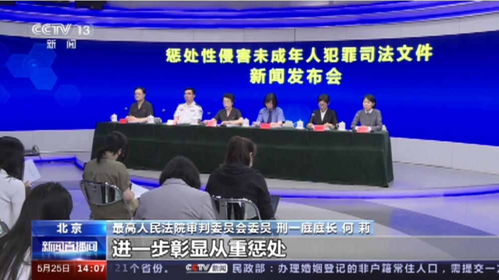 央视网消息:最高法今天(5月25日)召开新闻发布会,会同最高人民检察院联合发布《最高人民法院、最高人民检察院关于办理强奸、猥亵未成年人刑事案件适用法律若干问题的解释》,从严惩处性侵害未成年人犯罪。
