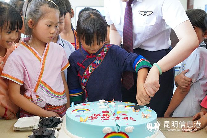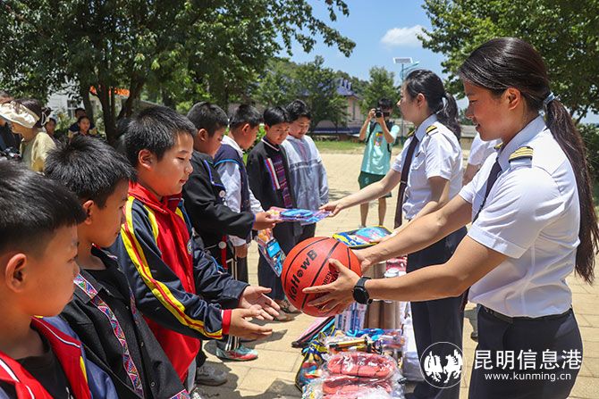 东航云南“燕锦”女飞行员示范组与云南边境小学共度“六一”。供图