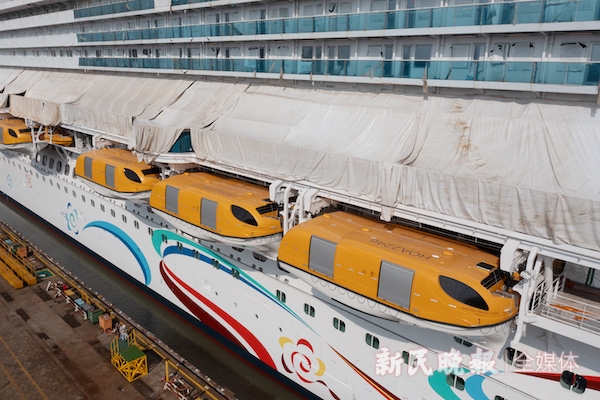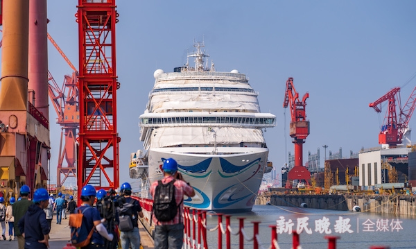 船坞一路见证了邮轮建造的过程。离开船坞代表着邮轮的主要核心设备和管路基本安装完毕,已经具备了航行的能力。