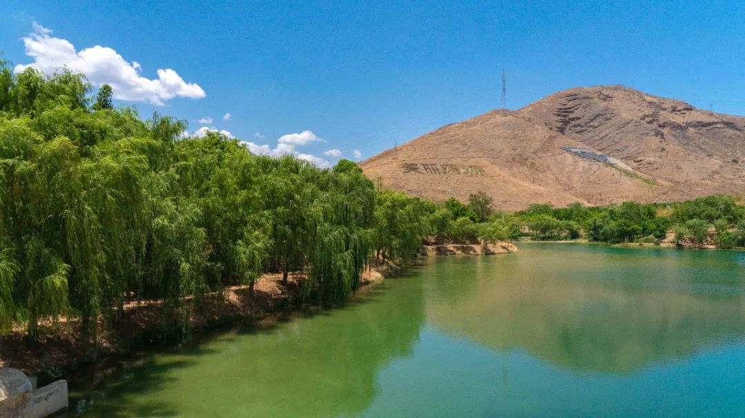 在堡子坪大桥的北端,有一条小路向东拐进去,顺着一条悠长的水泥路就可以进入大龙潭了。大龙潭的周边种满了垂柳,在这初夏时节,柳树已经长得青绿一片。在蓝天白云的映衬下,绿色的垂柳倒映在龙潭水库中,远远看去,竟给人几分清凉的感受。