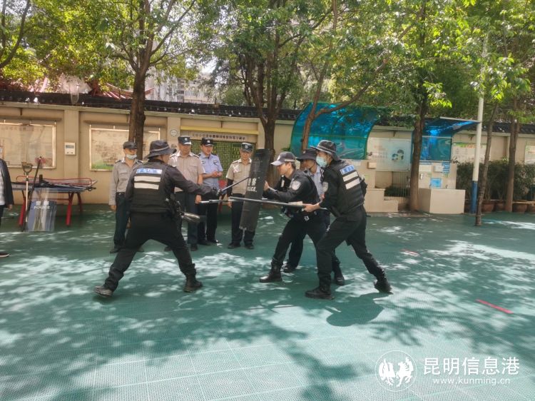 以一练派出所值守警力、二练校园值守力量、三练家长志愿者的“三练”行动,切实提升在校师生应对能力。一方面,积极组织民辅警参与分局组织的校园值守专项演练活动;另一方面,通过“送教进校园”“法制进校园”等活动对学校安保力量开展应急处置实操实训。(昆明信息港 记者合宇聪 五华警方供图)