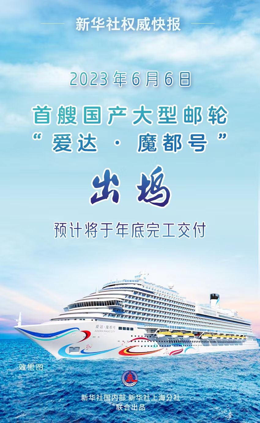 6日,在东海之滨的黄金岸线上,一艘白色涂装、流线型船体、身系“敦煌飞天彩带”的大型邮轮,鸣响汽笛,从中国船舶外高桥造船有限公司的2号船坞缓缓驶出,驶向东海……这就是首艘国产大型邮轮“爱达·魔都号”。出坞,标志着首艘国产大型邮轮从“静态建造”进入“动态调试”阶段,距离交付市场、投入运营更近一步。