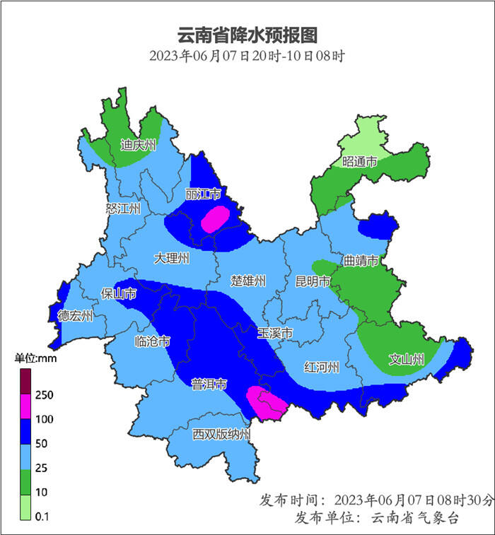 受弱冷空气和孟湾低压共同影响,6月7日夜间至9日,云南省将自东向西出现一次强降水天气过程。