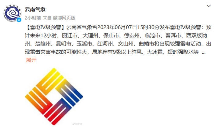 云南省气象台2023年06月07日15时30分发布雷电Ⅳ级预警