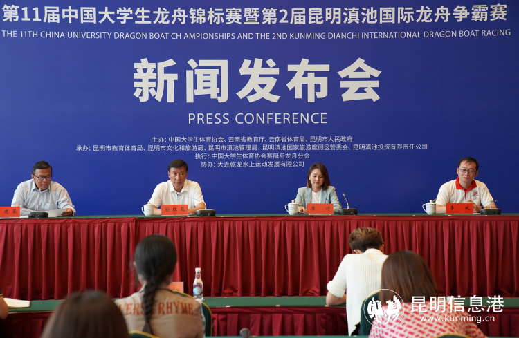 昆明信息港讯 记者李欣怡 6月8日下午,第11届中国大学生龙舟锦标赛暨第2届昆明滇池国际龙舟争霸赛新闻发布会在昆明会堂举行。本届赛事以“观滇池龙舟竞渡 展高原明珠风采”为主题,将于6月16日至18日在海埂大坝滇池草海水域举行。届时来自国内外的108支龙舟队伍将齐聚春城,奋楫竞渡。
