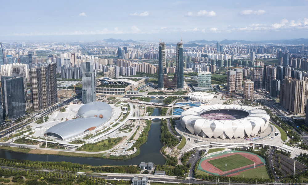 2021年8月2日拍摄的杭州奥体中心场馆群(无人机照片)。新华社发(杭州亚组委供图)