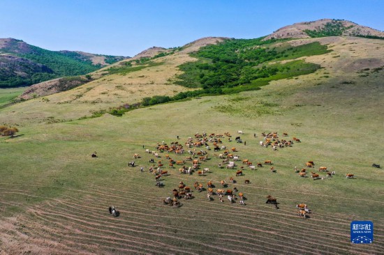 6月15日,牛群在草原上觅食(无人机照片)。