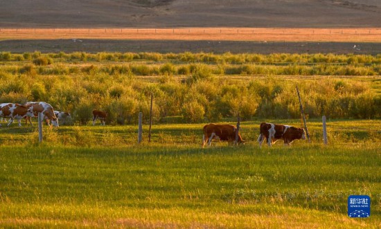 6月14日,牛群在草原上觅食。