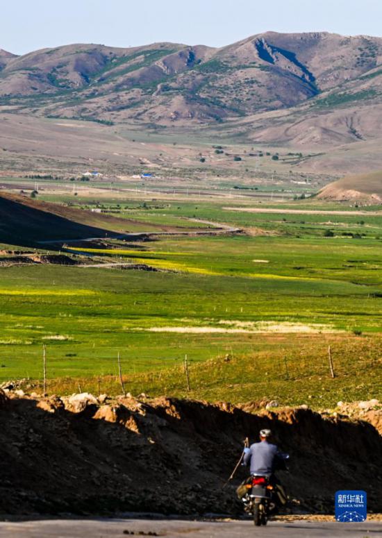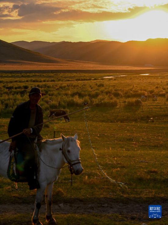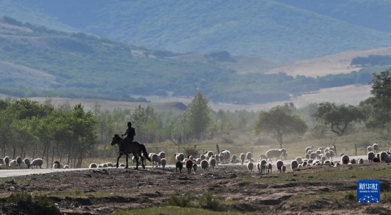 6月14日,在阿鲁科尔沁草原,牧民骑马放牧。