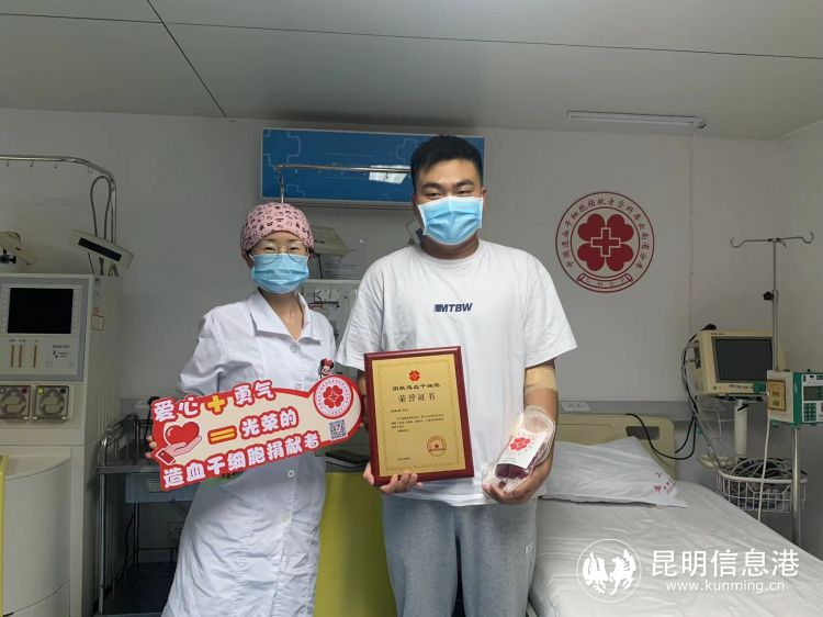昆明信息港讯 记者李红鸾 6月20日上午,在昆明某医疗公司工作的“00”后小伙小刘在昆成功捐献造血干细胞,为远方的白血病患者点亮希望之光。成为云南省第341例造血干细胞捐献者。