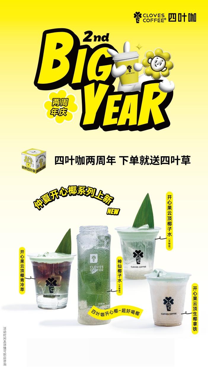 不仅如此,在产品策略上,除了结合云南花果特色之外,四叶咖也是打造了口味丰富、更新换代快、强地域特色口味的创意咖啡产品矩阵,培养核心用户,正如本次两周年之际推出的夏长新品“仲夏开心椰”系列,特邀第一届世界咖啡师比赛中国台湾地区冠军、GABEE. 咖啡品牌创始人林东源先生参与研发,酥脆咸香开心果搭配甘甜馥郁椰汁,碰撞出清甜爽口的奇妙滋味,打造夏日咖啡美学。