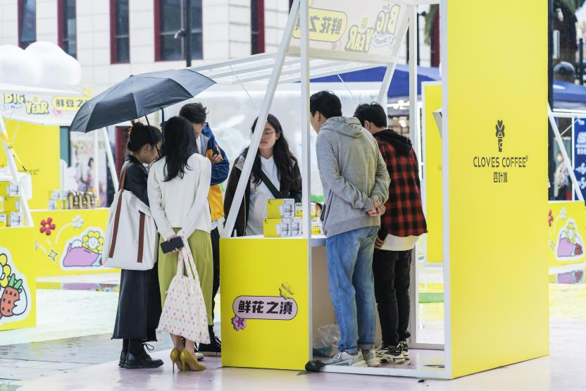 此外,为拉近与年轻人的距离,迅速提升品牌知名度,四叶咖也与公路商店、盒马、德和、BA、昆明航空、橄清等品牌达成合作,用巧妙创意“破圈”,轰动社媒平台,产生“1+1>2”的效果,将品牌势能扩散至全国。比如携手公路商店在昆明云纺文创园区打造的咖啡酒馆,日咖夜酒的新颖经营模式自带流量属性,一开业便吸引了众多年轻人前来拍照打卡,在各媒体平台引起广泛讨论。今年,来自云南的咖啡花果香飘到了陕西,西北首家公路商店&四叶咖联名点落户千年古都西安,早C晚A,集合咖啡、酒、音乐、艺术、社交多元属性,打造先锋青年的精神家园。